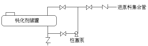 鈍化劑用儲罐儲存,加入泵為柱塞泵。鈍化劑直接加入到進(jìn)料集合管上。為檢查是否上量,集合管前有一放空閥。